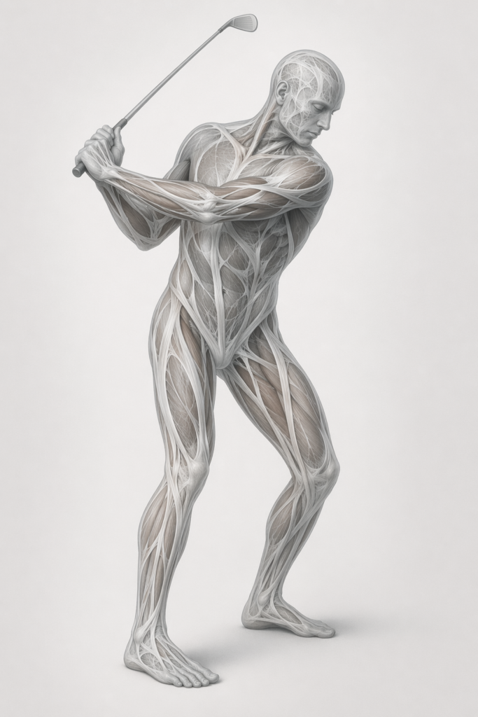 Fascia is the connective tissue web that surrounds and connects every muscle, bone, nerve, and organ in your body. When healthy it’s fluid, flexible, and largely invisible to you.